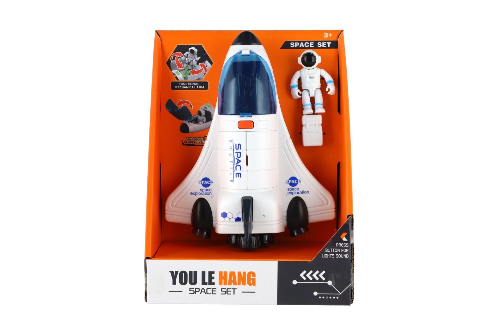 Připravte se na vesmírnou misi. Tento plastový raketoplán s figurkou astronauta přináší dětem skvělý zážitek plný světelných i zvukových efektů. Stačí stisknout tlačítko a raketoplán se rozzáří a vydá autentické zvuky startu – ideální pro všechny malé průzkumníky vesmíru.