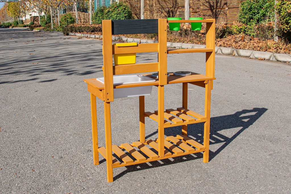 Dopřejte dětem svačinku přímo pod širým nebem a v objetí přírody. Na místě, kde pokrmy voní svěžím vánkem a slunce opéká bochníky z písku a vody, vzniká prostor pro hru plnou fantazie.Dopřejte dětem svačinku přímo pod širým nebem a v objetí přírody. Na místě, kde pokrmy voní svěžím vánkem a slunce opéká bochníky z písku a vody, vzniká prostor pro hru plnou fantazie. Tato zahradní kuchyňka nabízí skvělou příležitost, jak u dětí rozvíjet kreativitu, samostatnost a kulinářské dovednosti při hře na čerstvém vzduchu. Kuchyňka je vybavena užitečnými prvky, jako je džbán s kohoutkem, dřez, dvě plotýnky na vaření a dva květináče. Nechybí ani rozsáhlé úložné prostory, které se hodí pro uložení veškerého příslušenství. A jaké je dnes menu? Čistá fantazie!