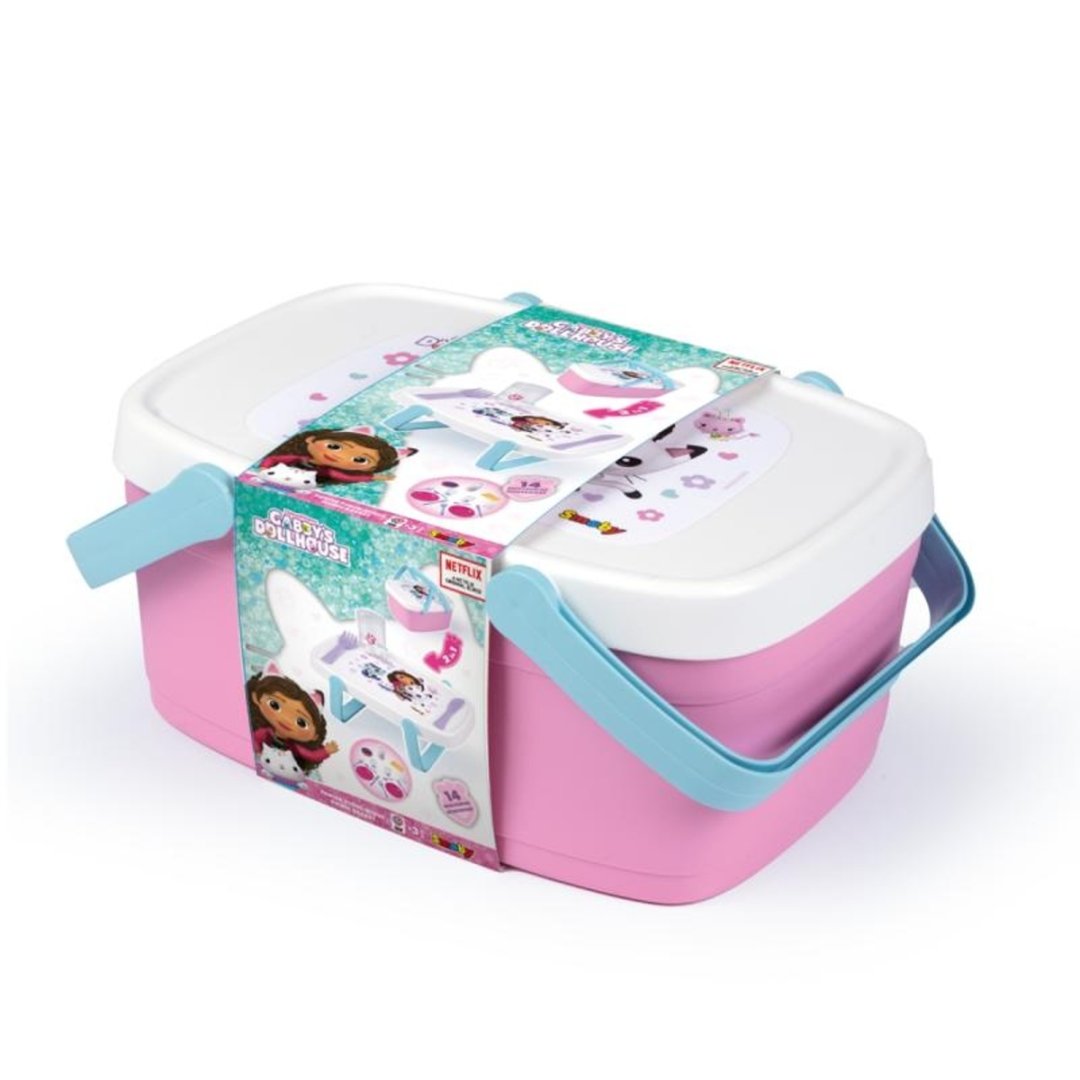 Piknikový koš 2v1 s motivem Gabby´s Dollhouse. Chytrý a všestranný piknikový koš se během několika sekund promění v odkládací stolek.EAN: 3032163125174