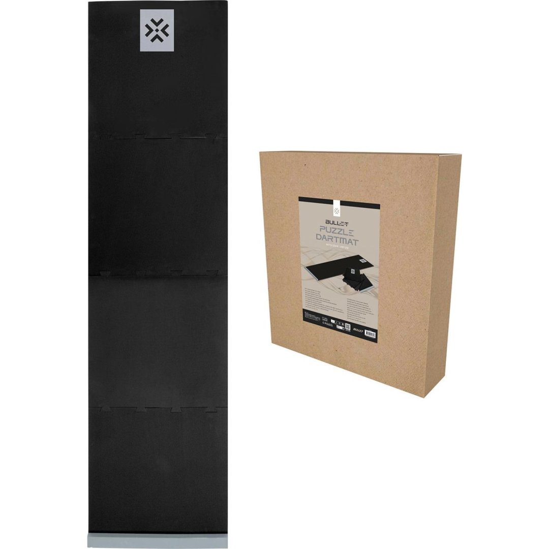 Koberec k terči Bullet Puzzle Dart Mat je praktický koberec s oche (čárou) složený ze 4 dílů. Poskytuje optimální ochranu pro padající šipky.