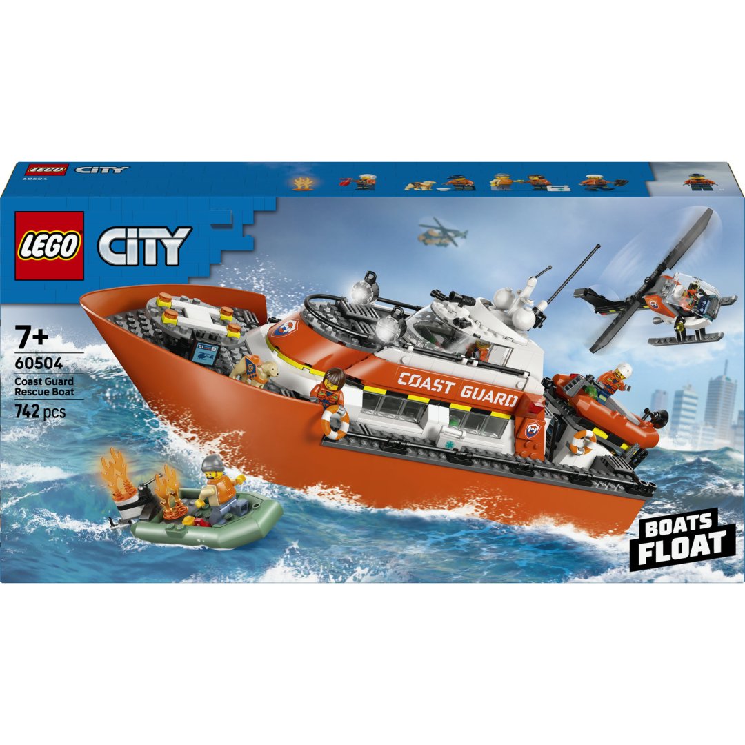 Děti od 7 let se vydají na oceánské dobrodružství s hračkou Lego City Záchranný člun pobřežní hlídky a vrtulník. Stavebnice nabízí bohatý herní zážitek s motivem záchranných akcí na moři.Děti od 7 let se vydají na oceánské dobrodružství s hračkou Lego City Záchranný člun pobřežní hlídky a vrtulník. Stavebnice nabízí bohatý herní zážitek s motivem záchranných akcí na moři. Tento model zahrnuje velký záchranný člun s oranžovou lodní částí a bílou nadstavbou, která je složena ze tří odnímatelných vrstev. Díky této konstrukci mají děti snadný přístup do různých částí lodi, včetně můstku, kajut a kuchyně. Člun je vybaven heliportem na zádi, kde lze umístit vrtulník, a především je celý model navržen tak, aby plaval na vodě, což podporuje realistickou hru. Součástí stavebnice je také oranžový záchranný člun s motorem, který je možné spustit z rampy na zádi hlavního člunu. K setu patří i menší zelený člun s připevněnými plastikovými plameny, představující případný požár na moři. Doplňkový vrtulník s černými a oranžovými detaily je vybaven otvíracím kokpitem a umožňuje simulovat letecký zásah při záchranných operacích. Všechny tři lodě a vrtulník jsou vyrobeny z plastových Lego dílků a jsou navrženy tak, aby mohly být použity ve vodě, což podtrhuje jejich funkčnost a zábavnost. V balení najdete pět minifigurek záchranářů v oranžových vestách, které doplňuje figurka psa a různé příslušenství, jako jsou hasicí přístroj, lékárnička, radiostanice a záchranné kruhy. Minifigurky jsou detailně zpracované, každá má svůj specifický výraz a doplňky, které podporují realistickou hru. Při záchranných scénářích lze využít i figurky plamenů, které představují ohnivé nebezpečí na moři.