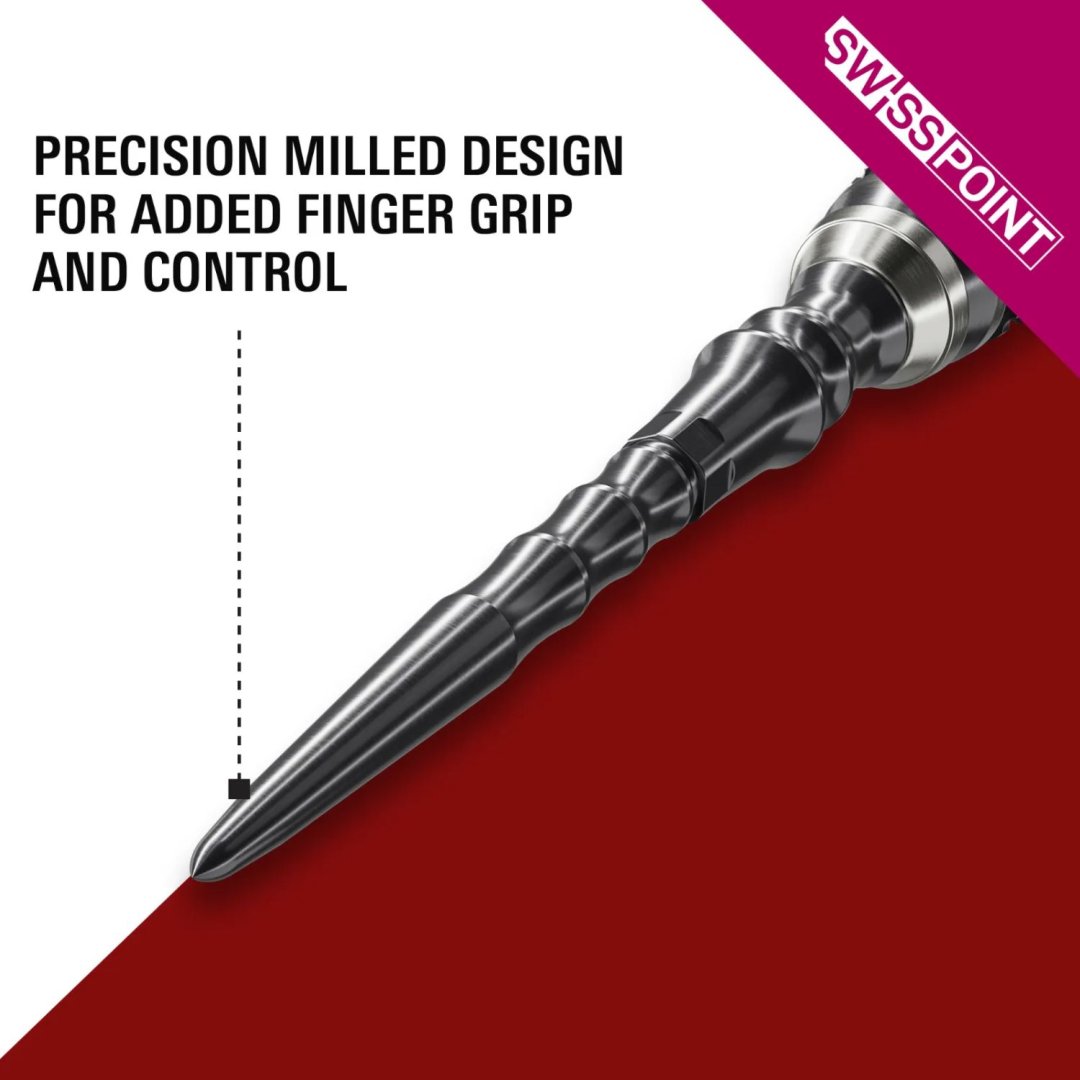 Kovové hroty Target Japan Premium Swiss Point umožňují během několika sekund změnit délku, styl a barvu hrotu pomocí kapesního nástroje Swiss Point Tool. Hroty Swiss jsou kompatibilní pouze s šipkami s označením Swiss Point.