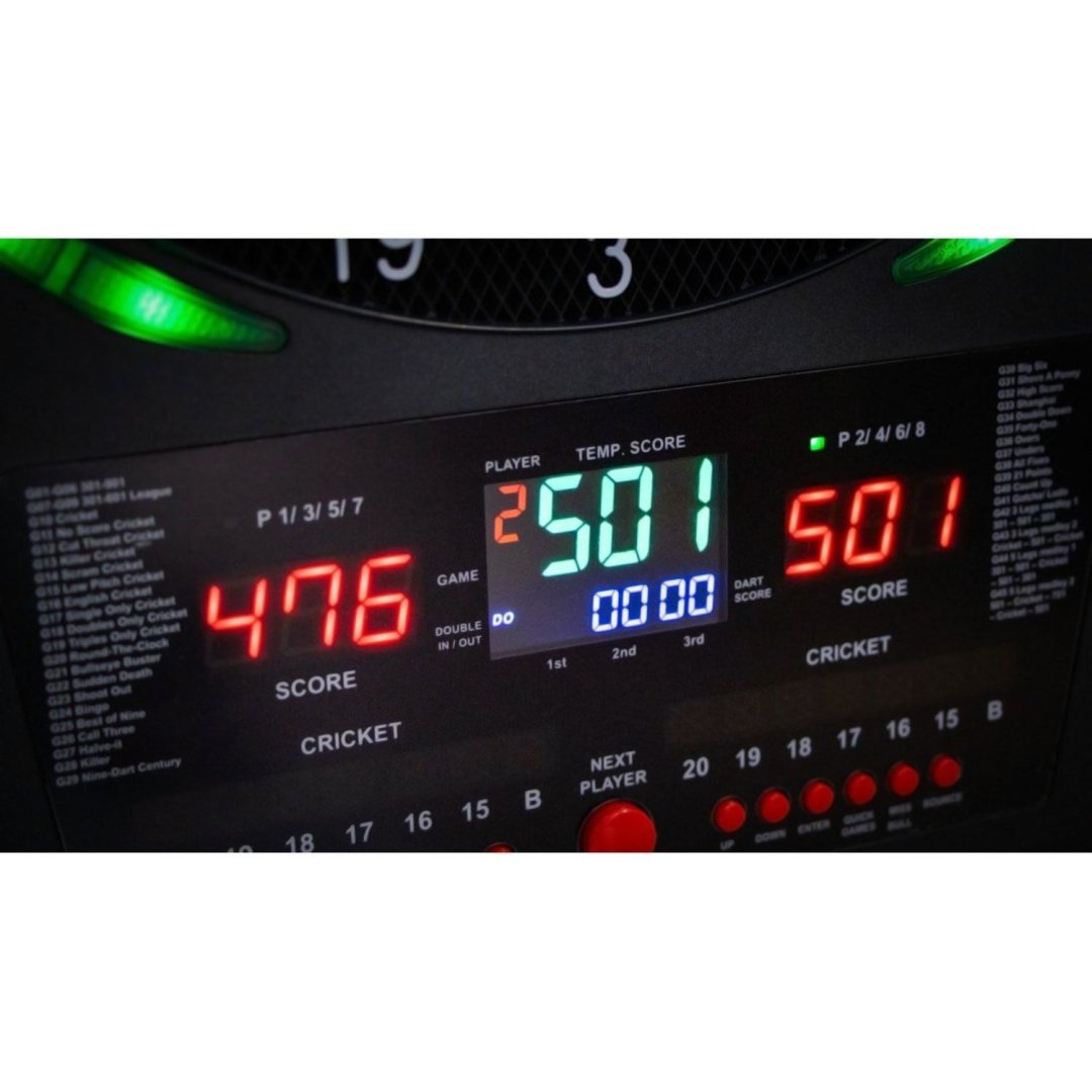 - 3 dekoratvní LED světla kolem terče, která zvyšují vizuální přitažlivost a vytvářejí živou atmosféru během hry