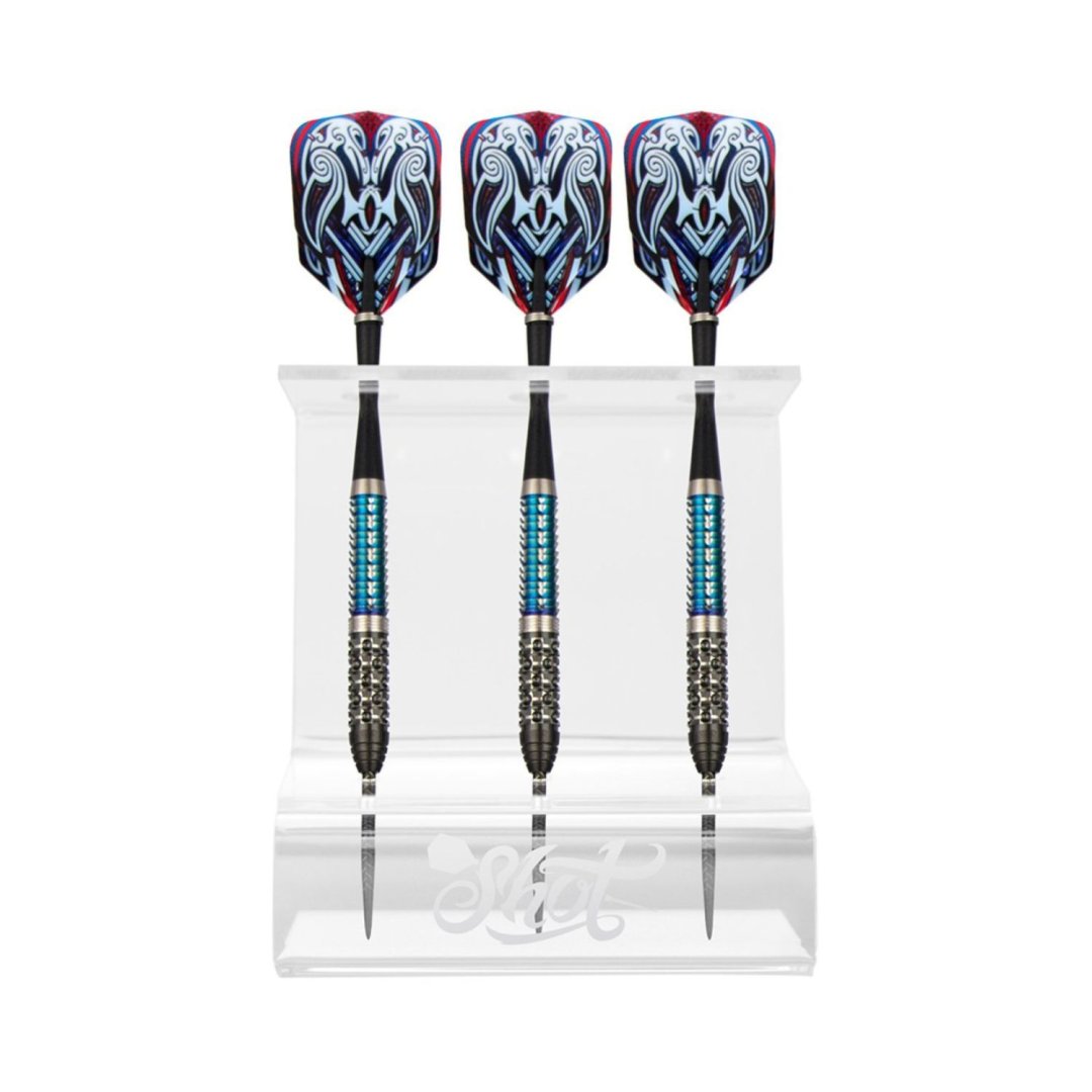 Stojánek Shot je jednoduchý, ale úžasný akrylový stojánek na šipky, který pojme jednu sadu sestavených šipek. Dokonalý způsob, jak vystavit mimořádnou sadu šipek.
