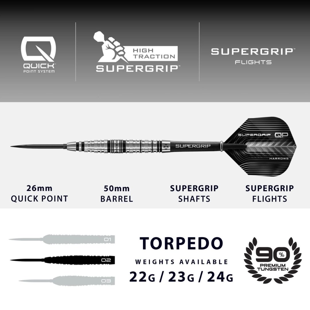 Harrows Šipky Steel Supergrip - Torpedo - Quick Point - 24g
