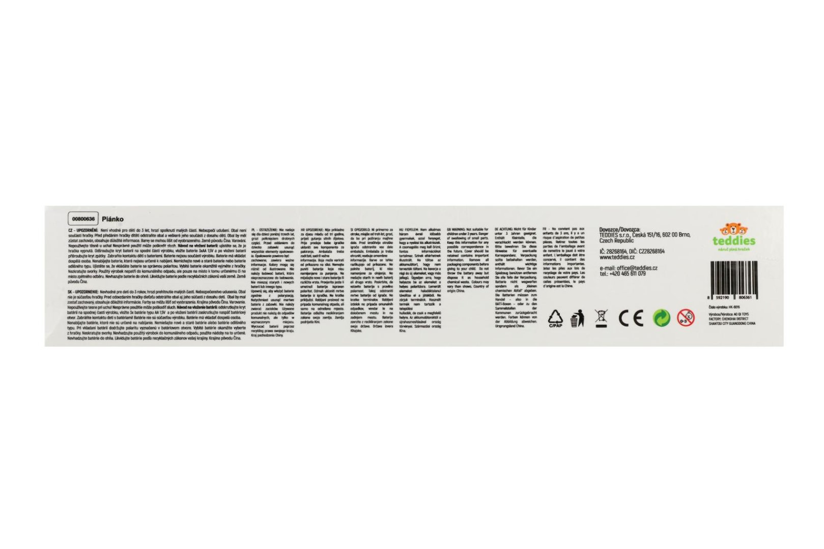 Barevné dětské piánko s roztomilými motivy zvířátek je ideální první hudební hračka pro nejmenší děti.EAN: 8592190806361