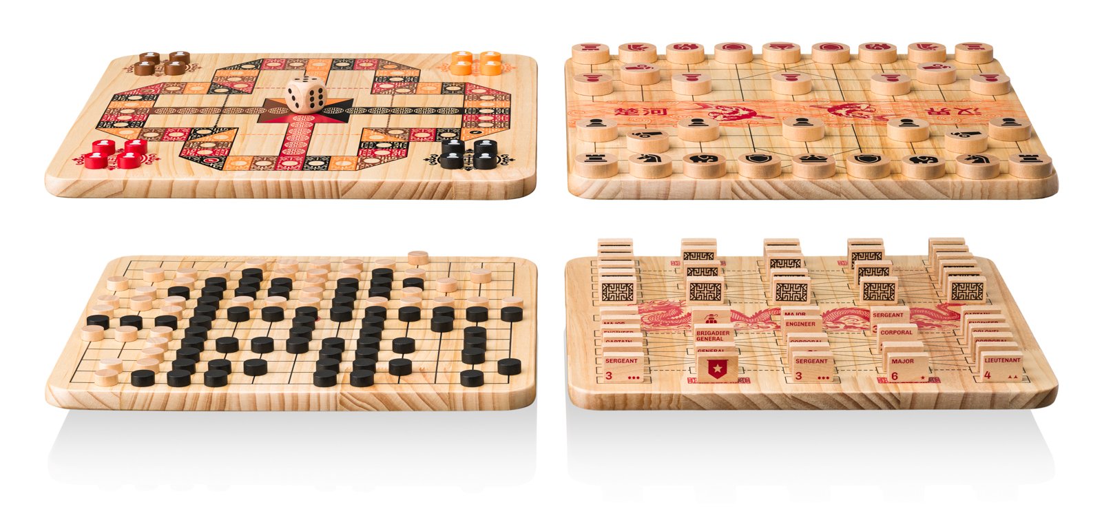 Soubor stolních her Popular Dragon. Zahrát si můžete Armádní šachy, Člověče, pozor dej, Čínské šachy a Hru Go.Soubor stolních her Popular Dragon. Zahrát si můžete Armádní šachy, Člověče, pozor dej, Čínské šachy a Hru Go.
