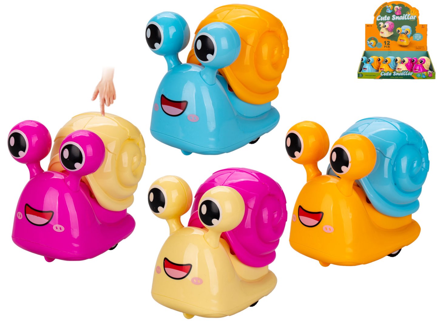 Kdo říká, že jsou hlemýždi pomalí? Ten náš vás přesvědčí o opaku! Tento veselý hlemýžď skrývá pod svou barevnou ulitou překvapivý pohon. Stačí jeden jednoduchý pohyb a z rozvážného šnečka se stane neúnavný běžec, který rozesměje každé dítě. Vybrat si můžete ze čtyř barevných variant.