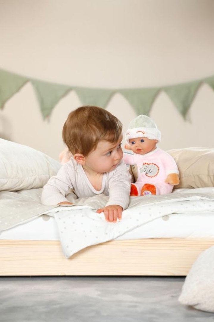 Tak heboučká: Díky měkkému tělíčku s roztomilou výšivkou spícího krokodýla a měkké vinylové hlavičce je ideální panenkou na mazlení a skvělou první společnicí pro ty nejmenší děti již od narození. Čepičku lze přetáhnout panence přes oči a hrát si tak na to, že panenka oči zavírá a otevírá. Uvnitř panenky je ukryto chrastítko, které při hraní povzbuzuje zvědavost k objevování světa. Pokud se Spinkáček ušpiní, lze jej snadno vyprat v ruce na 30° C.
