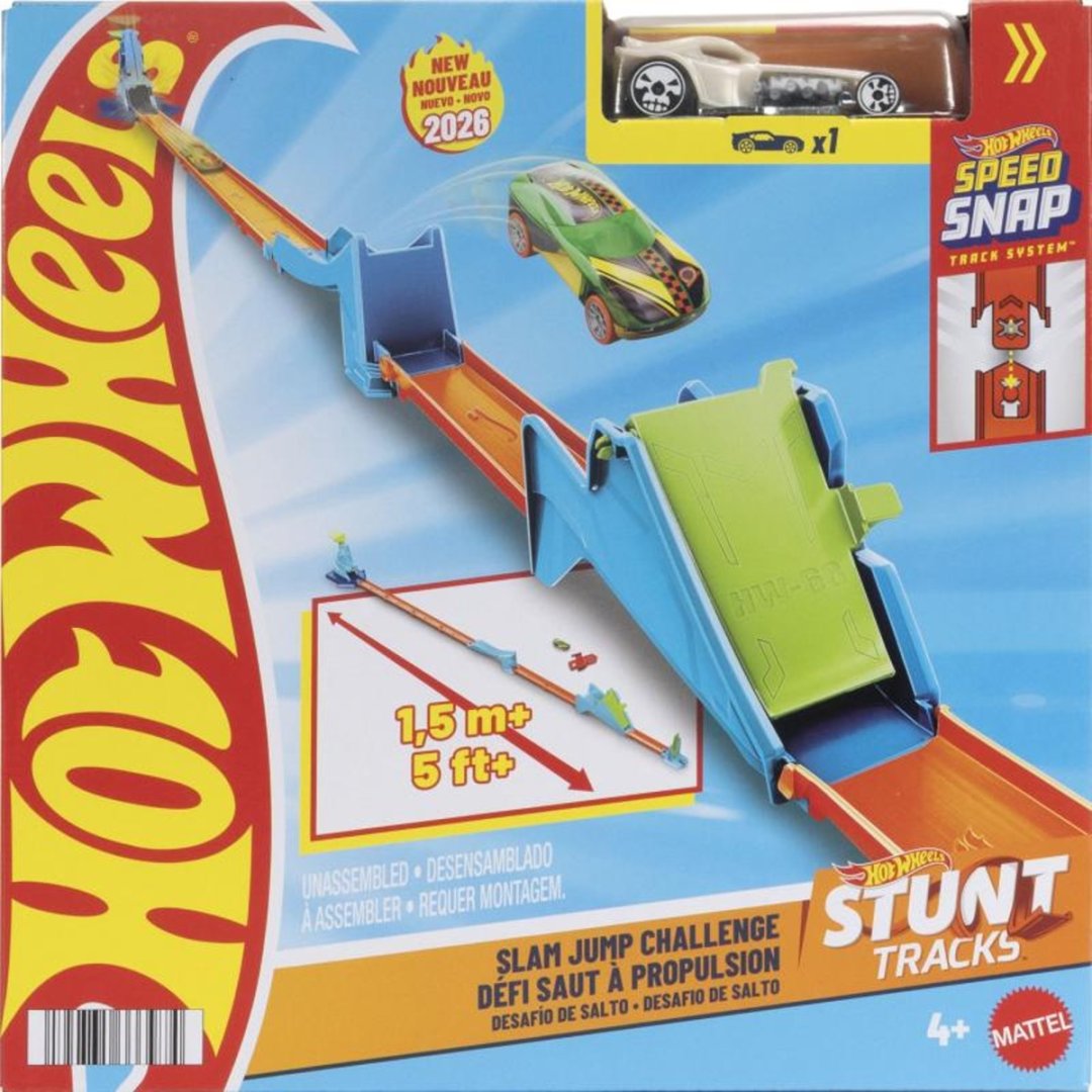 Sestavte si vlastní kaskadérskou dráhu s rampami, odpalovači a překlápěcími překážkami! Každá sada obsahuje angličák v měřítku 1:64 a prvky, které lze libovolně kombinovat s ostatními Hot Wheels tratěmi.