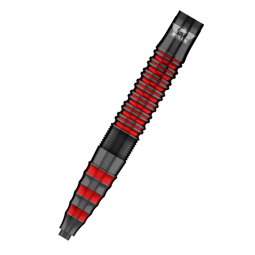 Steelové šipky Florian Preis jsou wolframové šipky (90% tungsten) s černými barrely s červenými proužky.