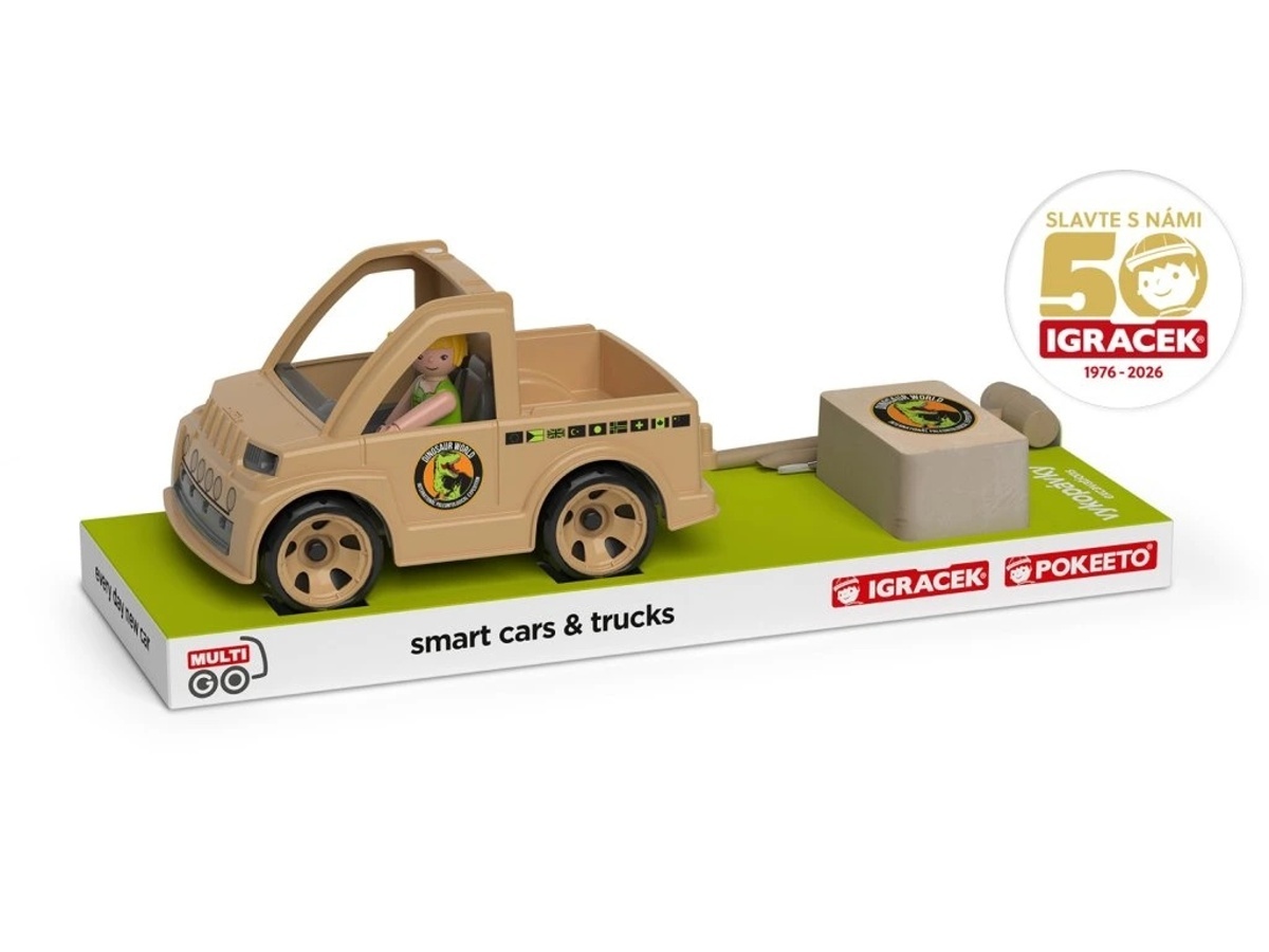 Vzhůru s Igráčkem v expedičním pickupu MultiGO na dobrodružnou paleontologickou výpravu. Objevte s pomocí nářadí styracosaura. Vzhůru s Igráčkem v expedičním pickupu MultiGO na dobrodružnou paleontologickou výpravu! Opatrně odhrňte písek, prach a hlínu – s pevným dřevěným nářadím odhalíte fosilii rohatého dinosaura Styracosaura. Čeká vás parádní objevování, trpělivé bádání a spousta příběhů z doby, kdy planetu obývali dinosauři.