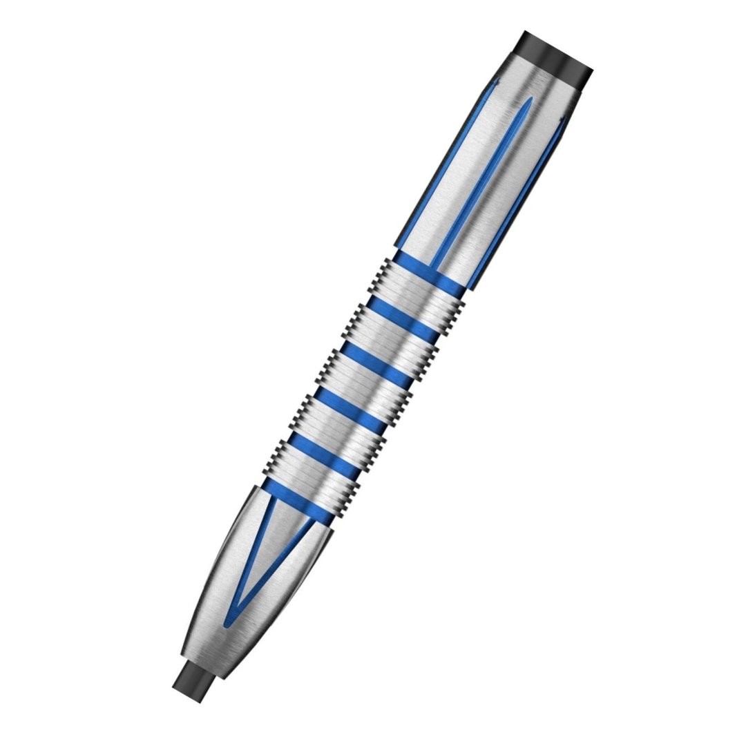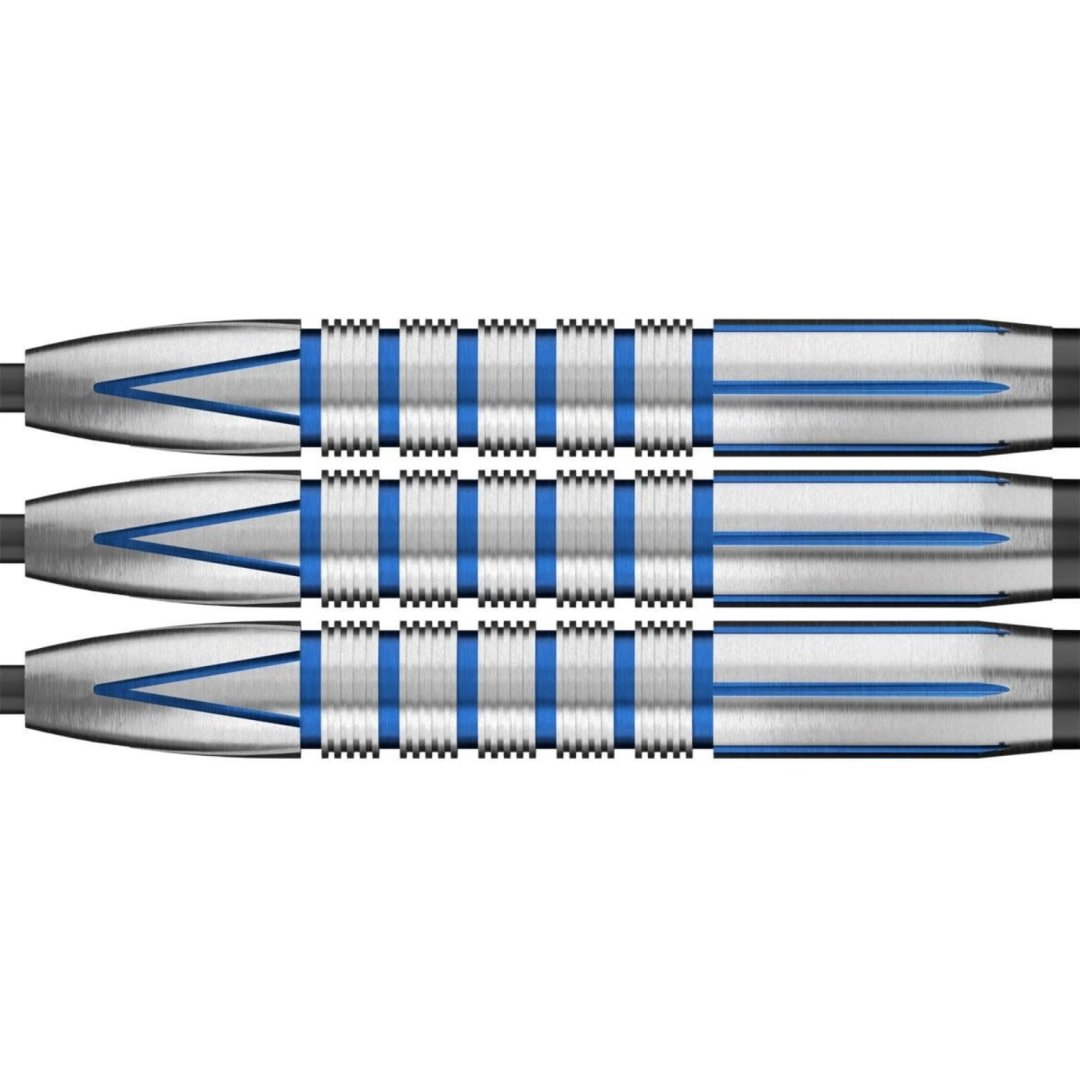 Steelové šipky Teemu Harju jsou wolframové šipky (90% tungsten) s barrely, které mají drážky zvýrazněné modrou barvou.