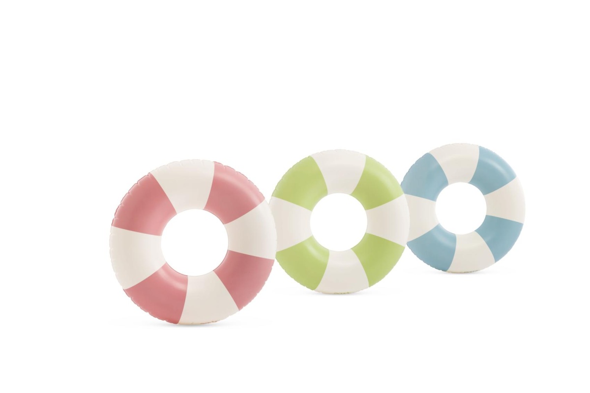 Užijte si léto ve velkém stylu! Tento nafukovací kruh s ikonickým pruhovaným designem v jemných pastelových barvách je ideálním společníkem pro lenošení v bazénu, u rybníka i na dovolené u moře. Díky průměru 91 cm nabízí dostatek pohodlí pro teenagery i dospělé, kteří se chtějí nechat jen tak unášet vlnami.
