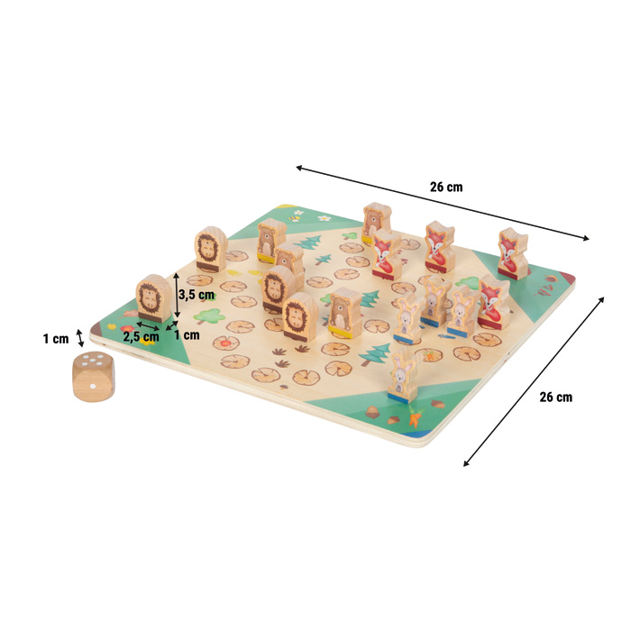 Hoďte kostkou, hýbejte figurkami a užijte si spoustu zábavy se zvířaty!Hoďte kostkou, hýbejte figurkami a užijte si spoustu zábavy se zvířaty! Tato propracovaná hra Člověče, nezlob se přináší oblíbenou klasiku v okouzlující zvířecí podobě. Medvěd, liška, ježek nebo králík, tyto láskyplně navržené dřevěné figurky zvou děti ke hře, při které se hravou formou učí počítat a zároveň rozvíjejí jemnou motoriku. V této verzi hry mohou proti sobě soutěžit až čtyři hráči a posouvat své figurky po kvalitně potištěné herní desce s motivy divokých zvířat. Součástí hry je extra velká dřevěná kostka, ideální pro malé dětské ručičky, která podporuje rané počítací dovednosti. Robustní dřevěné figurky se snadno uchopují, jsou odolné a navržené s ohledem na potřeby dětí.