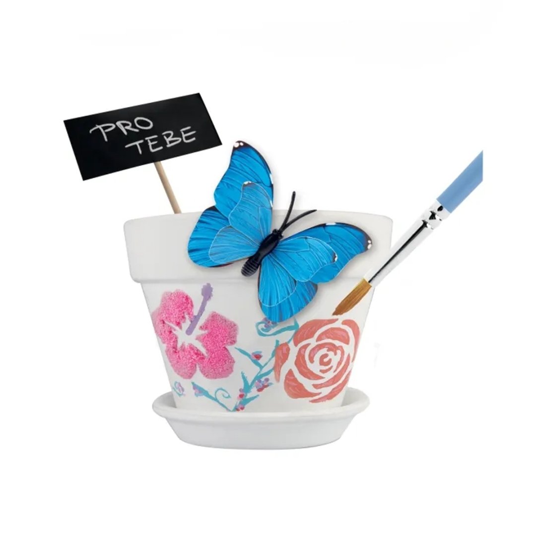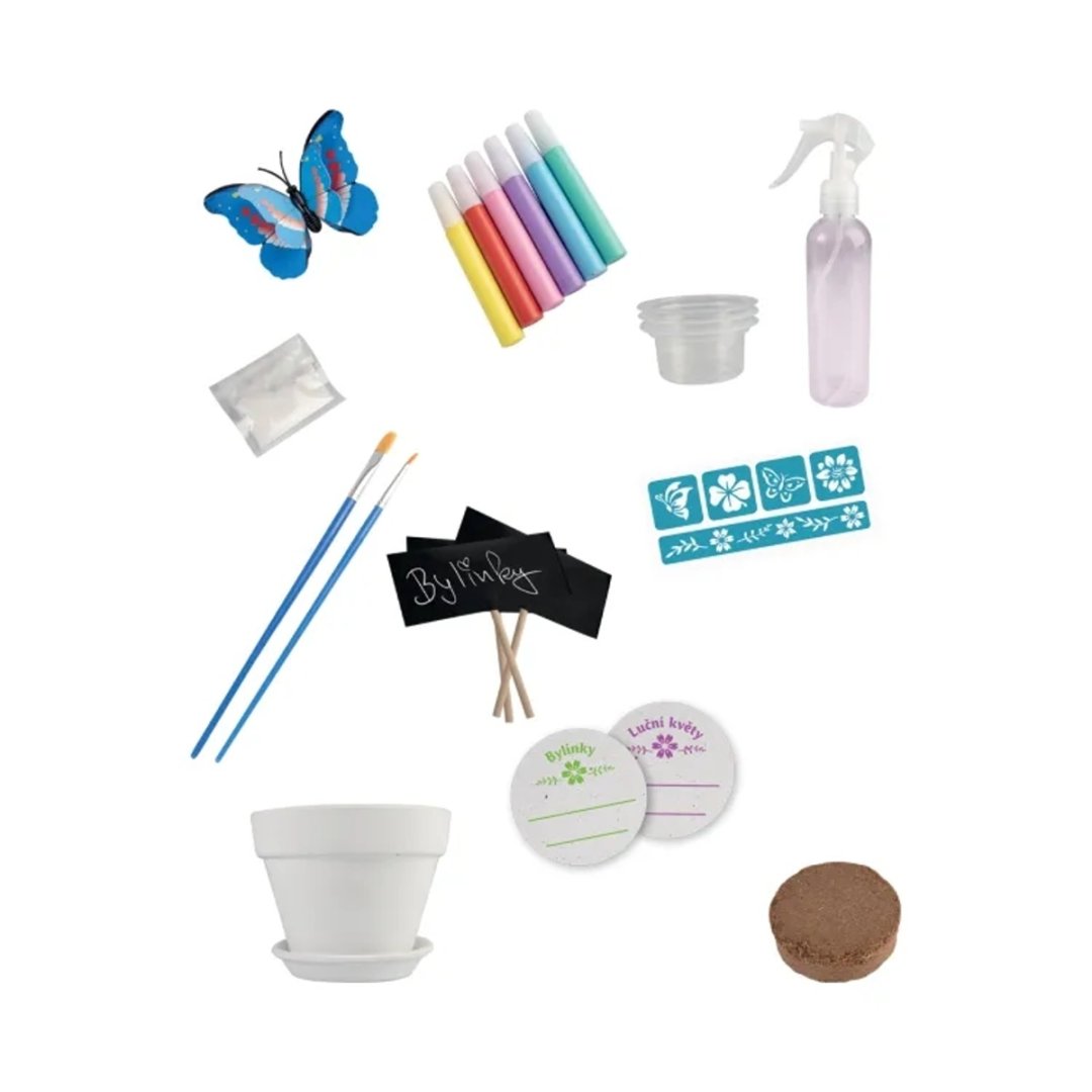 Tvořivý květináč je kreativní sada pro děti zaměřená na malování, pískování a pěstování rostlin. Tvořivý květináč od Albi je krásná a jedinečná kreativní sada, se kterou si děti mohou vlastnoručně ozdobit keramický květináč pomocí malování i pískování, zasadit semínka a sledovat, jak jim pod rukama vzniká živá dekorace. Sada obsahuje vše potřebné – od výtvarných pomůcek až po zeminu a rostoucí papíry se semínky bylinek a lučního kvítí. Nechybí ani samolepkové šablony, 3D dekorační samolepka motýla a informační brožurka plná zajímavostí o rostlinkách.