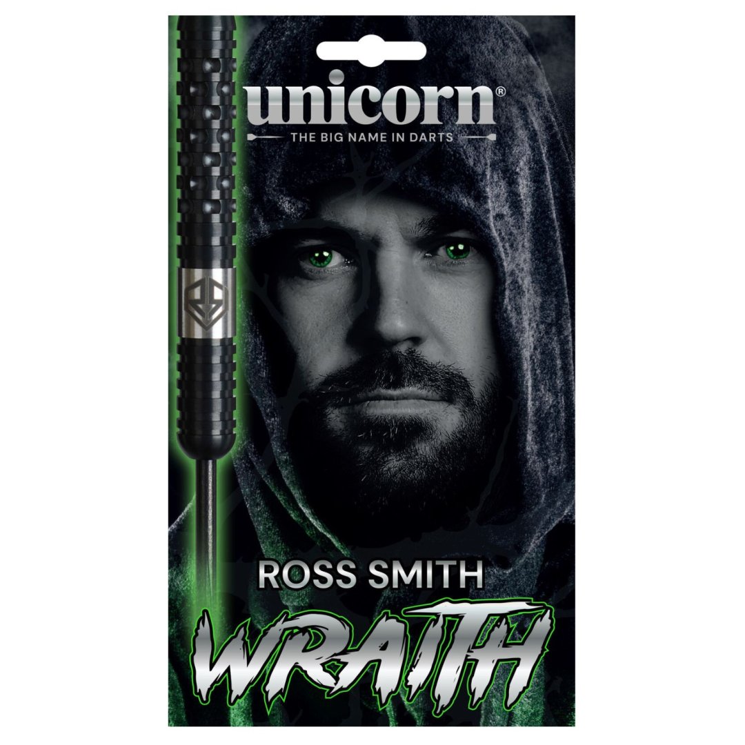 Steelové šipky Unicorn Wraith Ross Smith jsou wolframové šipky (90% tungsten) s černými barrely. Barrely jsou doplněny zelenými nylonovými násadkami Gripper 4, letkami Wraith a hroty Volute.
