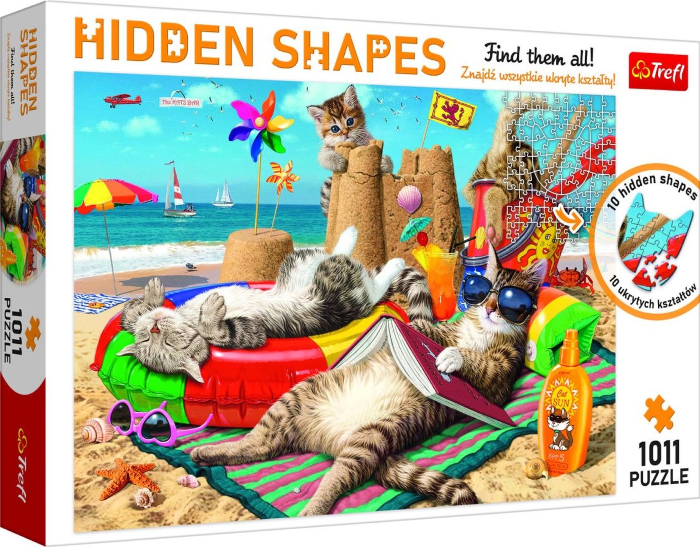 Trefl Puzzle - Kočky na pláži - Skryté tvary - 1011 dílků
