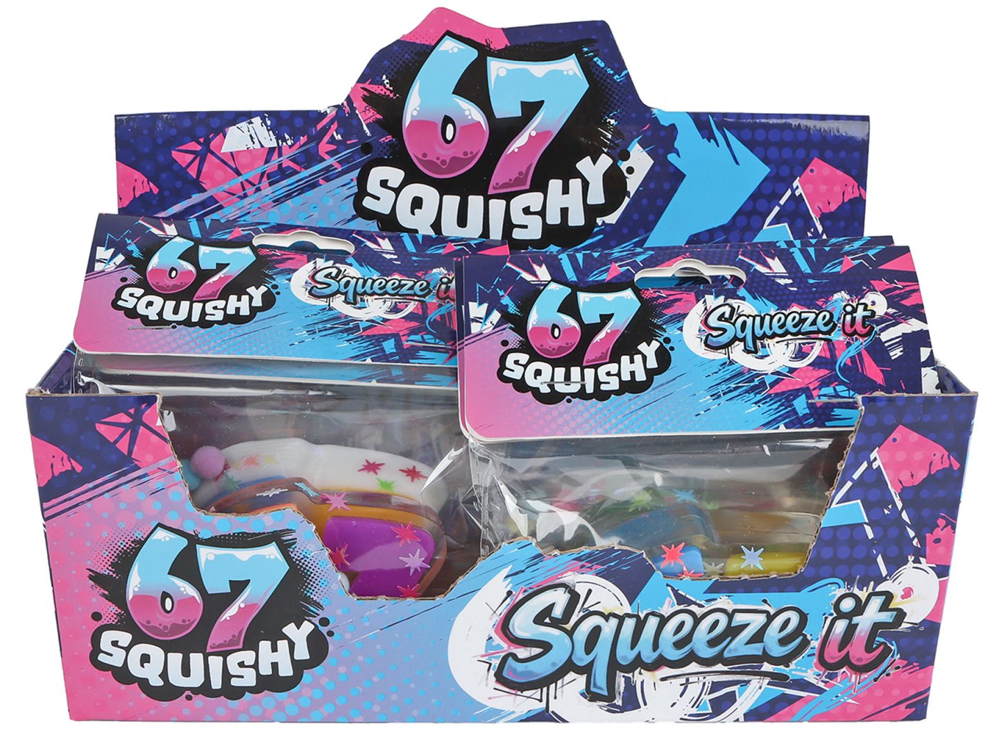 Hledáte ideální dárek? Stylové „antistresáky“ do kapsy Six Seven si zamilujete na první dotek. Mají čirý nebo bílý podklad a jsou neuvěřitelně pružné – můžete je natahovat, kroutit a mačkat, jak se vám zachce!“ V balení najdete dvě spojené číslice. Na výběr máte ze dvou druhů a tří stylových barevných variant.