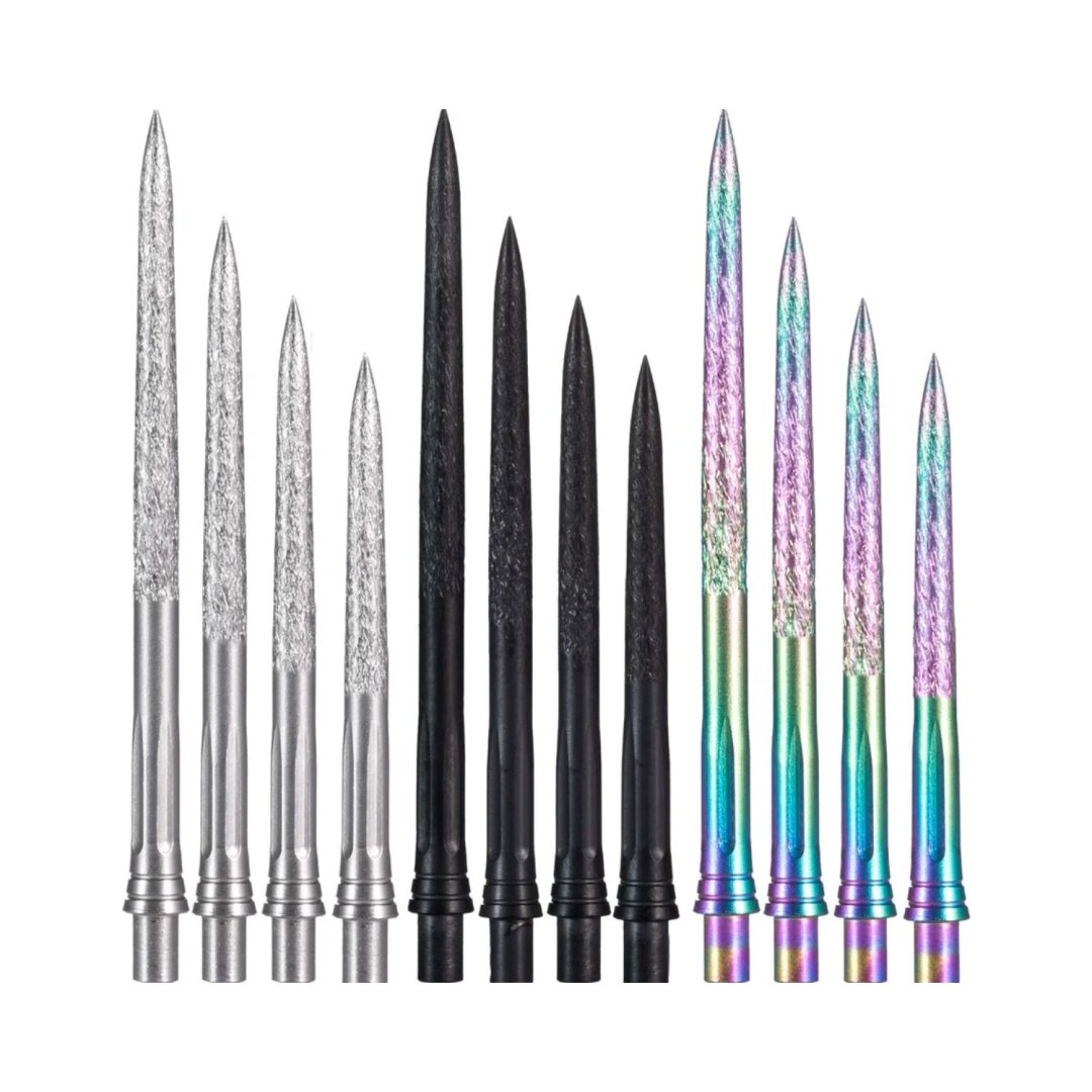 Výměnné kovové hroty Caliburn. Systém vyměnitelných hrotů Caliburn umožňuje hráčům vyměnit hroty během několika sekund snadněji než kdykoliv předtím. Hroty lze vyměnit pomocí nástroje Caliburn Replaceable Re-Point Tool a nástroje Replaceable Point Driver Tool. Nástroje pro výměnné hroty nejsou součástí balení. Jednoduše vlože hroty do šipek a poté je vyměňte pomocí snadno použitelného nástroje Replaceable Re-Point (není součástí balení).